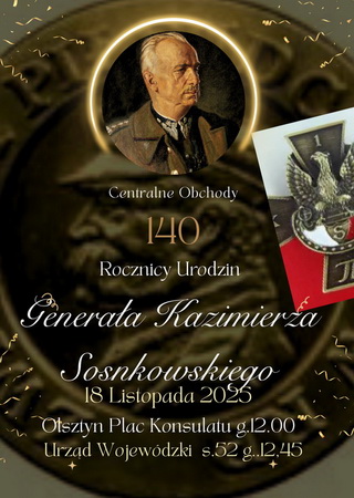 » 12:45 - W Urzędzie Wojewódzkim (s. 52) odbędzie się spotkanie z historią; w tej części wydarzenia odbędą się wykłady prof. dr hab. Jana Kirszaka oraz dr Piotra Podhorodeckiego, autorów najnowszych prac poświęconych postaci generała; wręczone zostaną także Honorowe Krzyże Generała Sosnkowskiego, które w imieniu rodziny wręczy przedstawiciel rodu Sosnkowskich.