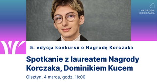 Spotkanie z Dominkiem Kucem, laureatem Nagrody Korczaka z 2023 roku, członkiem zarządu Fundacji GrowSPACE, który odważnie zamienił wrażliwość w działanie. Swoim działaniem pokazuje, że nawet jeden głos może uruchomić pozytywną lawinę zmian. Będzie to rozmowa o zaangażowaniu, odpowiedzialności i o tym, jak mądrze wspierać młodych ludzi w walce o ich prawa i rozwój.