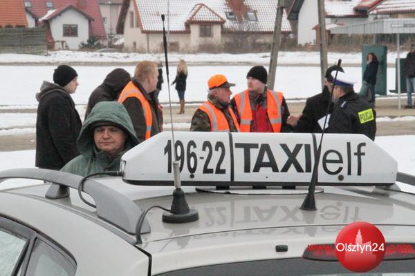 Zorganizowana przez olsztyńskich taksówkarzy manifestacja w proteście przeciwko planom odstąpienia od budowy olsztyńskiej obwodnicy | Olsztyn, ul. Sielska | 18.02.2013