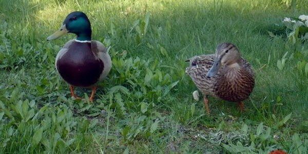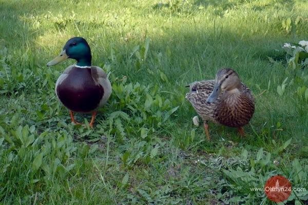 Najczęściej widuję parę, ale ostatnio też jeszcze kaczuszkę solową - bardzo ufa ludziom, podchodzi i łepek zadziera, jakby chciała pokazać, że na łapie ma obrączkę, no bo ją ma naprawdę.