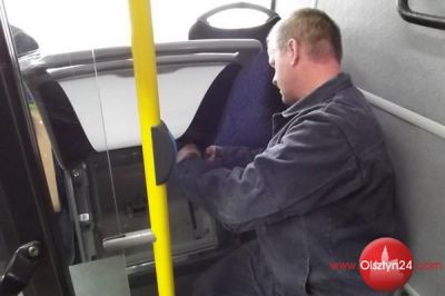 Montaż testowych siedzeń w autobusie MPK (fot. P. Kaperzyński) |