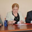 Wicemarszałek Gustaw Marek Brzezin przekazuje umowę Jolancie Kłoczewskiej dyr. Szkoły Policealnej w Olsztynie