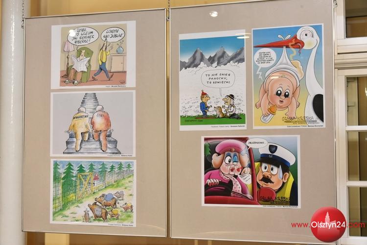 I część pokonkursowej wystawy konkursu na rysunek prasowy im. Aleksandra Wołosa w Galerii Stary Ratusz