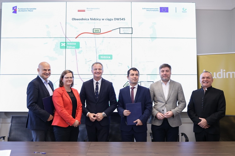 W Urzędzie Marszałkowskim w Olsztynie podpisano dzisiaj (7.10) umowę na budowę obwodnicy Nidzicy w ciągu drogi wojewódzkiej nr 545. W ramach inwestycji powstanie droga o długości ok. 3,04 km, stanowiąca obwodnicę Nidzicy od strony północnej. To kontynuacja rozwiązań komunikacyjnych, mających na celu wyprowadzenie ruchu tranzytowego z centrum Nidzicy, zapoczątkowanych przez budowę obwodnicy miasta w ciągu drogi wojewódzkiej nr 604.