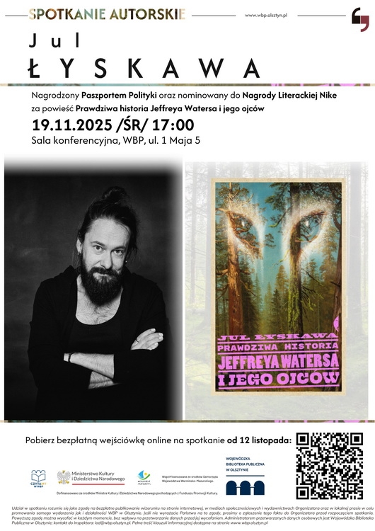 Wojewódzka Biblioteka Publiczna w Olsztynie zaprasza na spotkanie z Julem Łyskawą, autorem jednego z najgłośniejszych debiutów literackich ostatnich lat. Wydarzenie odbędzie się w środę (19.11) o godz. 17.00, a rozmowę z pisarzem poprowadzi dziennikarz i publicysta Robert Lesiński.