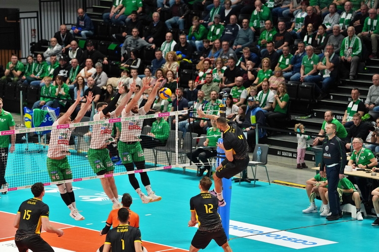 Od początku trzeciego seta na boisku oglądaliśmy Jakuba Majchrzaka, który zastąpił Pawła Cieślika. Od początku obie drużyny grały punkt za punkt i często zmieniały się na prowadzeniu. Skutecznymi atakami popisywali się Karlitzek oraz Sousa, a ponadto kibice byli świadkami długich wymian. Gdy asa serwisowego posłał Lemański, PGE GiEK Skra prowadziła 20:19 - chwilę później, gdy tym samym „odwdzięczył się” Halaba, było już 21:20 dla Indykpolu AZS. Olsztynianie rozegrali kapitalną końcówkę, a wykorzystana kontra przez Karlitzka przyniosła ich zwycięstwo 25:21.