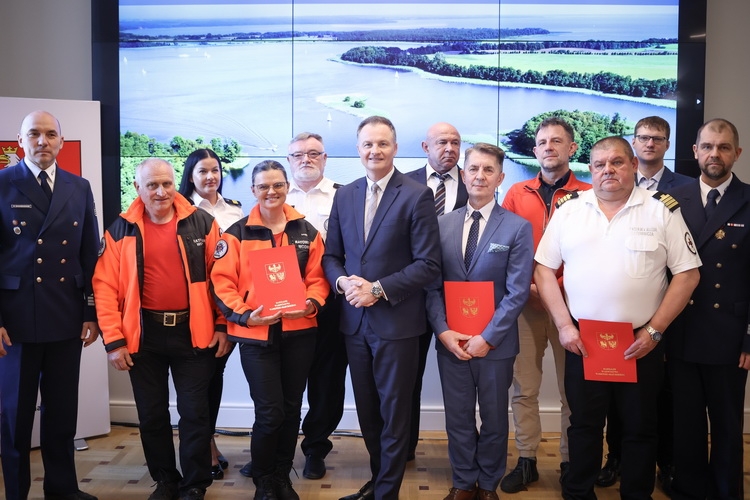 Marszałek województwa warmińsko-mazurskiego Marcin Kuchciński przekazał dzisiaj (23.03) przedstawicielom służb ratownictwa wodnego z regionu umowy na finansowanie ich działania w sezonie 2026.