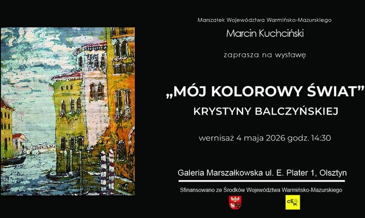 Centrum Edukacji i Inicjatyw Kulturalnych w Olsztynie zaprasza w przyszły poniedziałek (4.05), o godzinie 14.30, do Galerii Marszałkowskiej na wernisaż wystawy „Mój kolorowy świat” autorstwa Krystyny Bylczyńskiej.